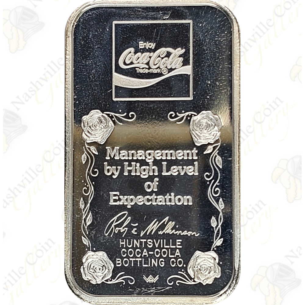 Coca-Cola 75th anniv. 1 oz silver bar (Huntsville) — SKU #69404
